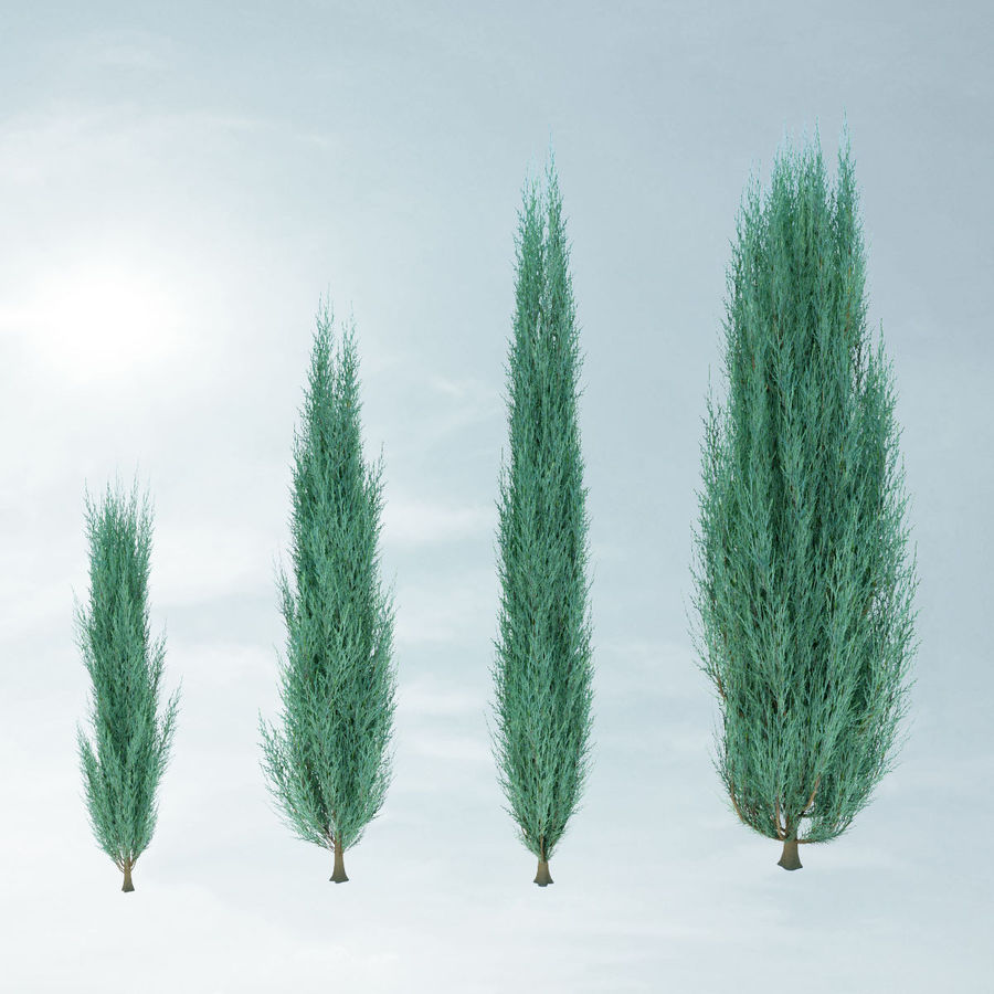 Usko piramidalne krošnje, grana usmerenih uvis ka stablu, plavičastih četina, poraste do 5 m u visinu i do 1,5 m u širinu.